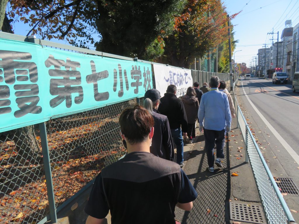 点呼をとった後は、朝霞市指定避難場所である「朝霞市立第七小学校」へ移動しました。