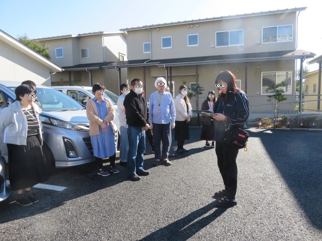 そして利用者様達を駐車場へ避難させ、一人ひとり点呼をとりました。