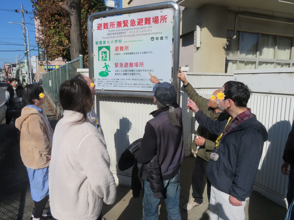 点呼をとった後は、朝霞市指定避難場所である「朝霞市立第七小学校」へ移動しました。