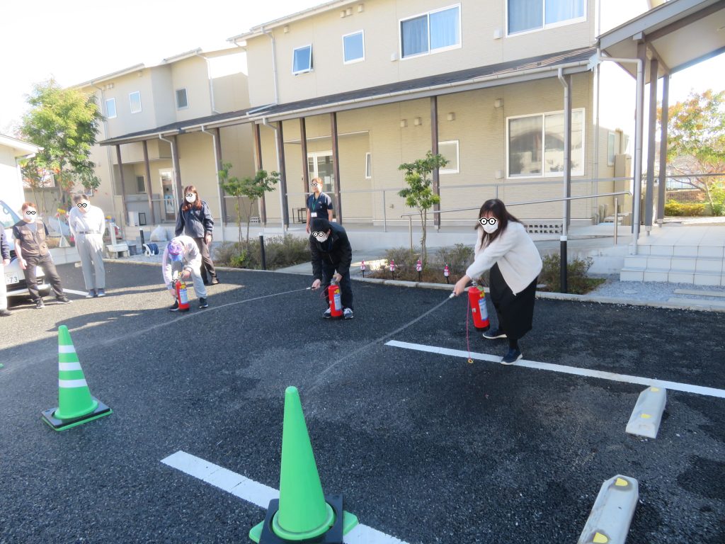 事業所に帰所した後は消防職員の方も参加しての消火器訓練を行いました。